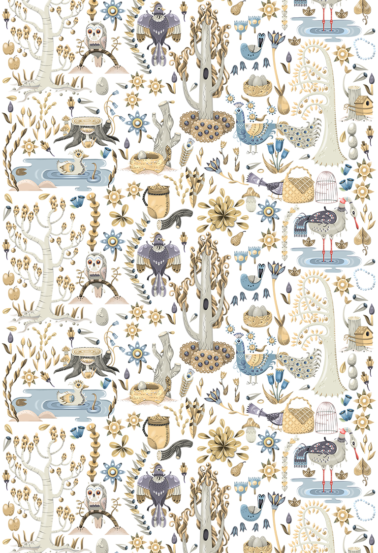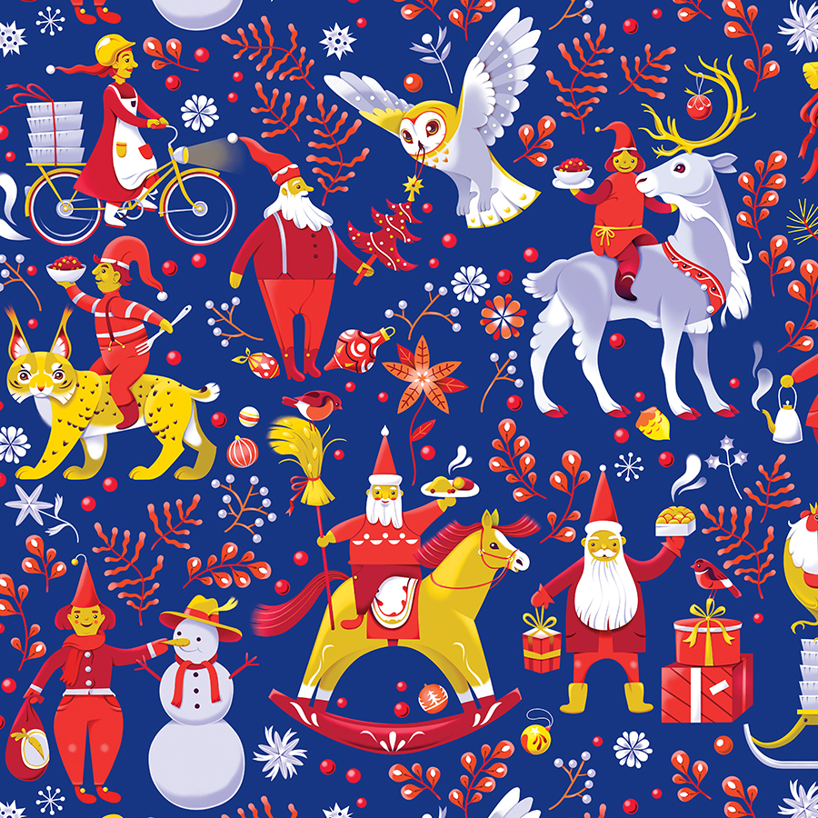 Riku Ounaslehto (born 1991) is an illustrator & pattern designer based in Helsinki. He has been studying graphic design in Faculty of Art and Design in University of Lapland and he is also a visual artisan. The themes in Riku’s illustrations range from humorous characters to Lapland’s nature so his detailed works are often filled with nordic plants and animals. Riku’s works are usually made with vector graphics but he also combines other tecniques and bold colours in his works to create his unique style. To counterbalance the digital world, Riku draws and paints also with traditional tools. Riku is happy to work with different projects – he can master quick & neat vectors as well as voluminous & detailed patterns. For the last couple of years Riku’s passion has been designing textile patterns – and now those patterns are conquering the world from USA, France, Italy, Spain, Sweden, Germany, South Korea, China, India and Australia! Riku Ounaslehto also makes designs to license (ask for a link to the material ).