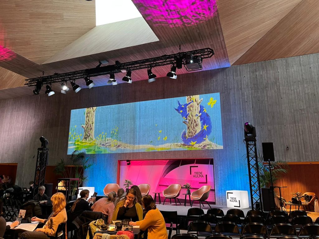 Editorial illustrations projected in Helsinki University’s Think Corner by Ilja Karsikas