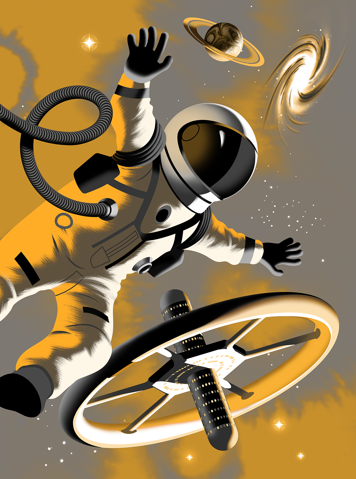 Jussi Kaakinen (s. 1978) on helsinkiläinen kuvittaja ja graafinen suunnittelija. Hän valmistui vuonna 2006 Taideteollisesta korkeakoulusta ja on työskennellyt yrittäjänä siitä lähtien. Jussin monipuolisissa kuvituksissa voi nähdä vaikutteita muun muassa 1900-luvun alkupuolen julistetaiteesta, eurooppalaisista selkeän viivan sarjakuvista ja tietokonepelien historiasta. Hän käyttää kuvien pohjana usein perinteisiä mustepiirros- ja akryylimaalaustekniikoita. Jussi inspiroituu sekä luonnosta että tieteiskirjallisuudesta, ja hänen tyylipalettinsa kattaa niin kevyet kuin raskaatkin aiheet. Hän nauttii työskentelystä monenlaisten asiakkaiden kanssa ja luo sujuvaa kuvallista viestintää tarvittaessa myös tietografiikan, karttakuvituksen ja typografian keinoin. Jussi tunnetaan myös kirjankansien suunnittelijana ja tietokirjoihin erikoistuneena lastenkirjakuvittajana. Hänen kuvittamiaan töitä on palkittu muun muassa Grafian huipuissa, Asiago-postimerkkikilpailussa ja Sarjakuva-Finlandialla.