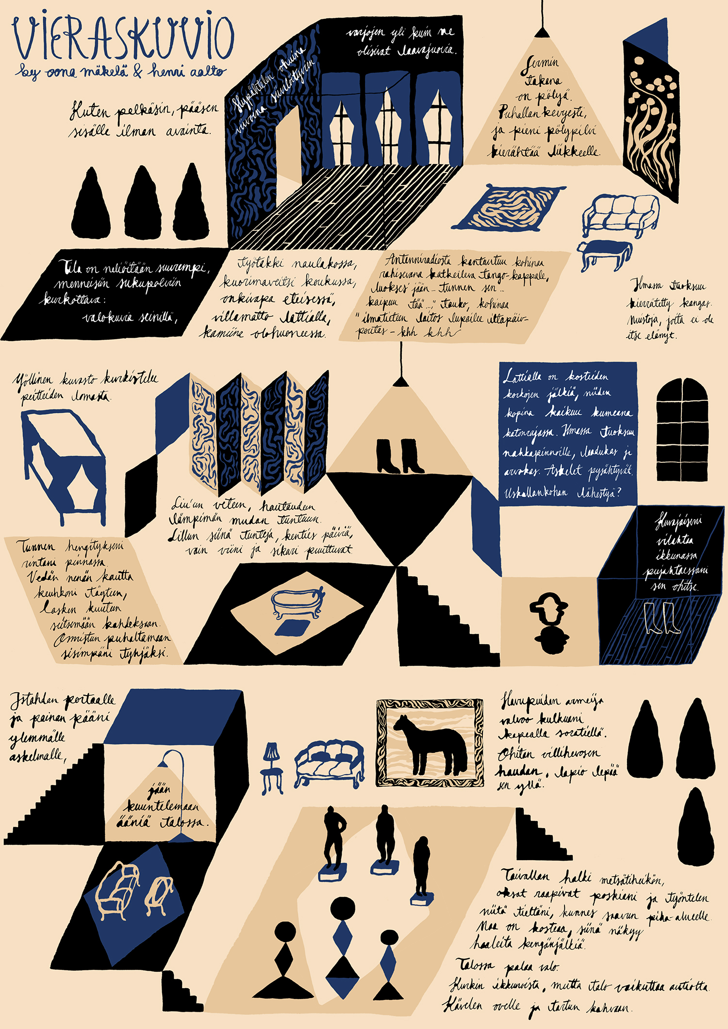 Oona Mäkelä (s. 1991) on helsinkiläinen kuvittaja ja kuosisuunnittelija, joka on suorittanut opintonsa Antwerpenin taideakatemiassa Belgiassa ja valmistunut graafisen suunnittelun maisteriksi. Suunnittelijana Oona on monipuolinen, ja hän on paitsi kuvittaja, myös graafikko, kuosisuunnittelija, keramiikkaharrastaja sekä animaatiostudion perustaja ja toinen jäsen. Oonan tyylin tunnistaa monipuolisesta viivankäytöstä, joka liukuu taitavasti eläväisestä ja hennosta staattisempaan. Hänen työnsä koostuvat sopusointuisista, vaikkakin toisinaan railakkaista väreistä, leikkisyydestä ja vahvasta muotojen ja graafisten elementtien käytöstä. Oona suhtautuu intohimoisesti uusiin taiteellisiin aluevaltauksiin, itsensä kehittämiseen ja hän osallistuu mielellään monenlaisiin projekteihin. Oonan mielestä siisteintä elämässä on uusiin tyyppeihin tutustuminen ja hän lähtee asiakkaan kanssa mielellään vaikka kahville juttelemaan uudesta projektista! Hänen asiakkaitaan ovat muun muassa Nanso, Makia, Helsingin Sanomat, Vegemessut ja Kustantamo S&S.