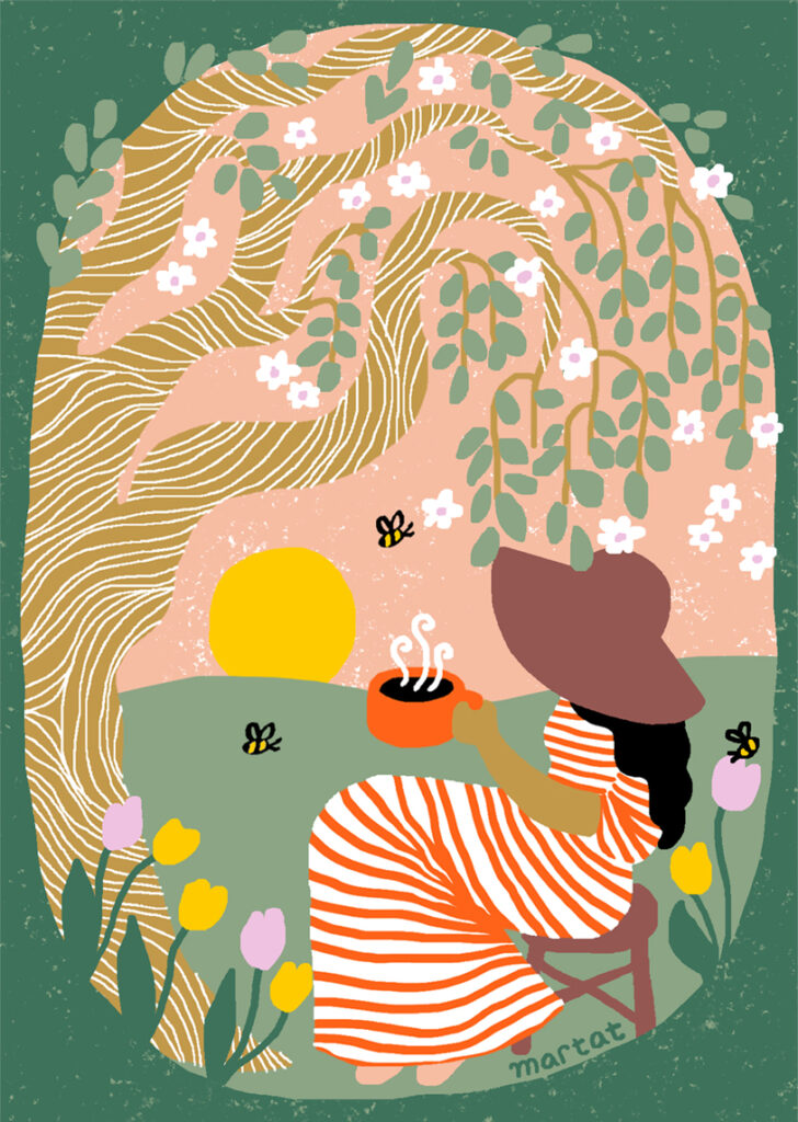 Miten työpäiväsi kuvittajana yleensä etenee – mitä teet ensimmäiseksi aamulla ja miten päivä yleensä päättyy?