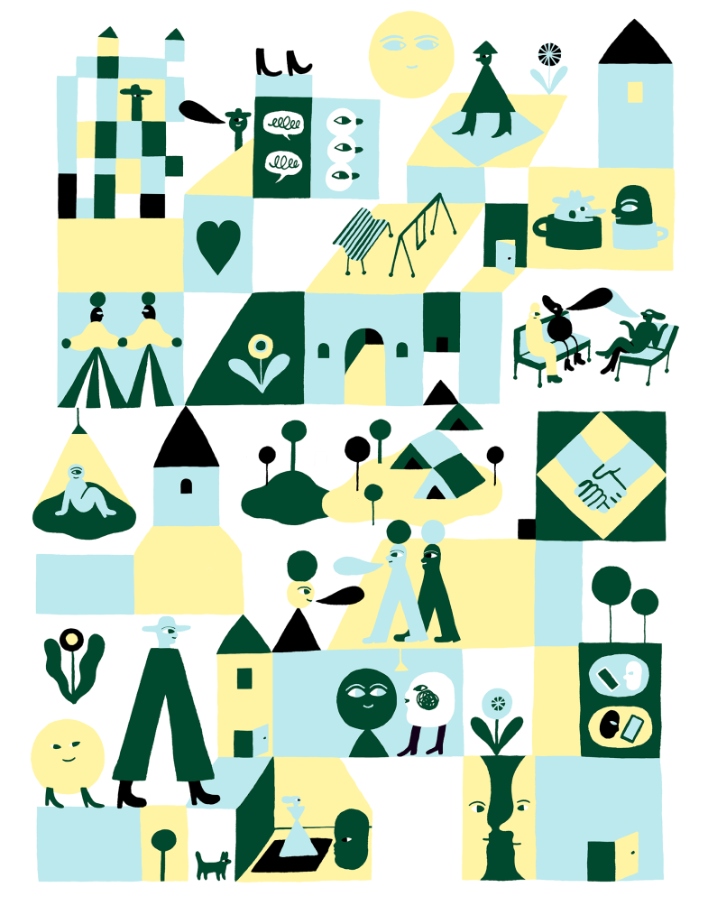 Asiakasta Nuorisoala ry:tä viehätti Oonan kuvitustyylissä erityisesti sen runsaus ja eloisuus, etenkin hänen kuvittamissa asunnoissa, taloissa ja kaupunkiympäristöissä! Tämä miltei täydellinen briiffi hyödynsi upeasti Oonan uniikkeja vahvuuksia. Tuloksena syntynyt kuvitus on täynnä pieniä huoneita, tilanteita ja yksityiskohtia, joista jokainen esittelee nuorisotyön päivittäisiä hetkiä. Pieniin kohtauksiin kuuluu arkipäivän tilanteita, kuten nuorten ja nuorisotyöntekijöiden vuorovaikutusta, tarinoiden jakamista tai osallistumista tapahtumiin ja tehtäviin nuorille tarkoitetussa tilassa lämpimän kahvikupin äärellä ja paljon muuta.