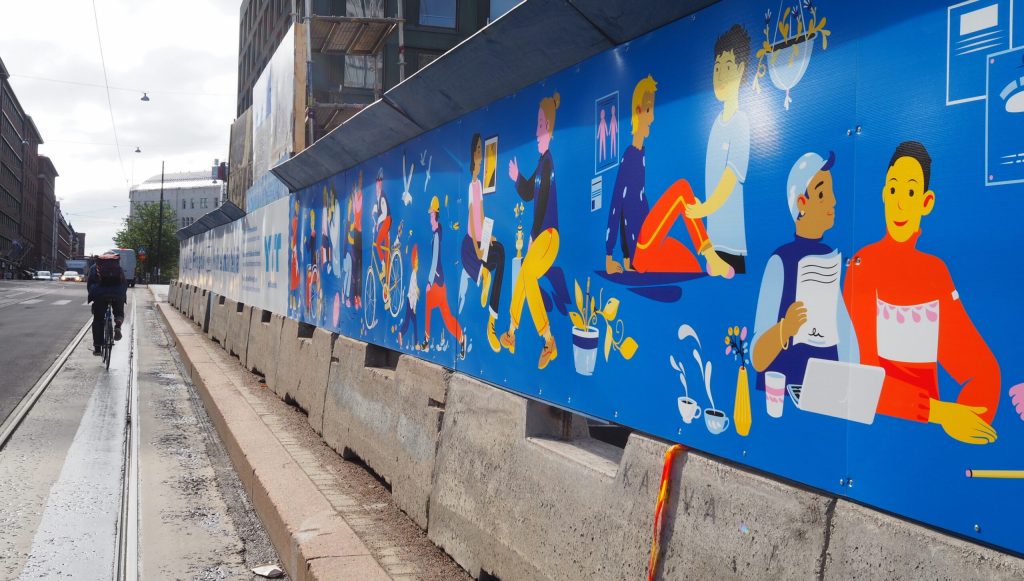 Haluamme kiittää Helsingin kaupunkia hyvästä yhteistyöstä, sekä onnitella Helsingin sosiaali-, terveys ja pelastustoimialaa heidän esimerkillisestä työstään kuvitettujen työmaa-aitojen käytöstä! Mahtavaa olla kärkijoukoissa, yhdessä kuvittajien kanssa tuomassa väriä kaupunkiin!