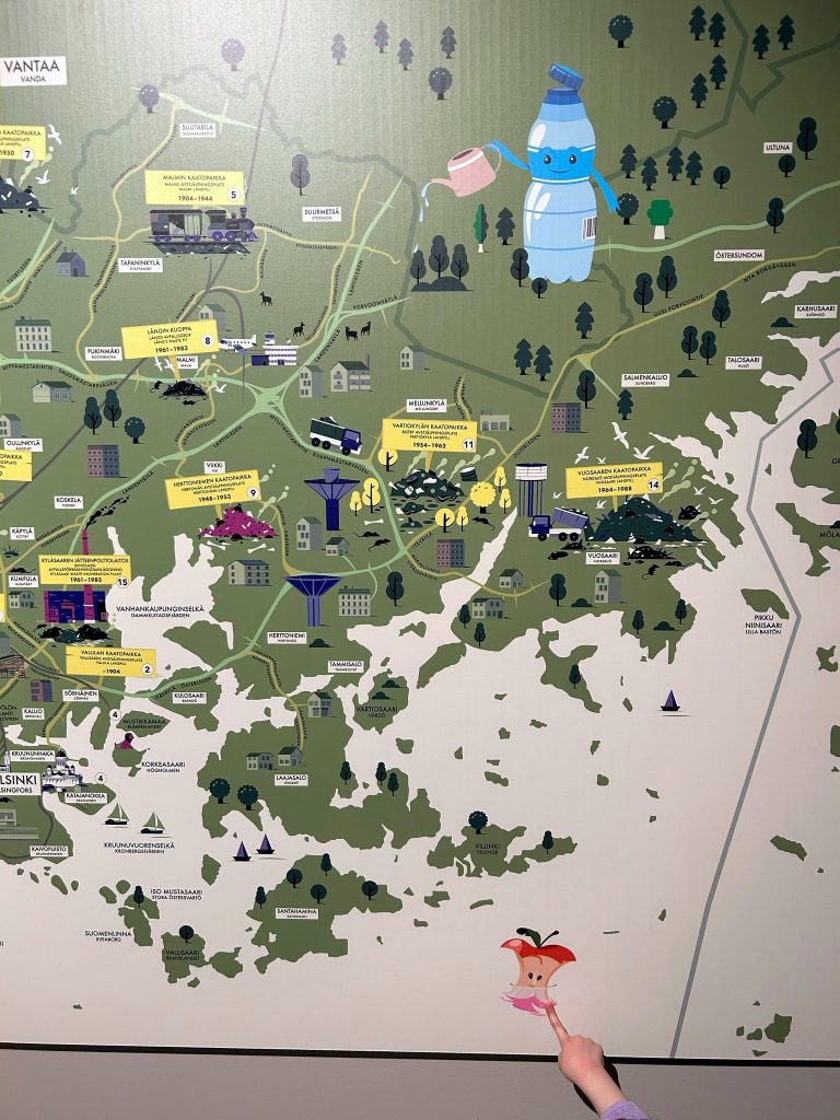 Näyttelyssä havainnollistetaan Helsingin jätehuollon historiaa, nykyhetkeä sekä tulevaisuuden näkymiä leikkimielisten tehtävien ja erilaisten teemojen, sekä Riku Ounaslehdo kuvittamien karttojen avulla. Koti-osasto havainnollistaa kuluttamisen muutoksia, Viemäri taas paljastaa putkistojen salaisuudet, Jätehuolto näyttää jätteiden reitit kaupungissa, Kierrätyspajassa vanha saa uuden elämän ja Tulevaisuus-osio kehottaa unelmoimaan kestävästä kaupungista.