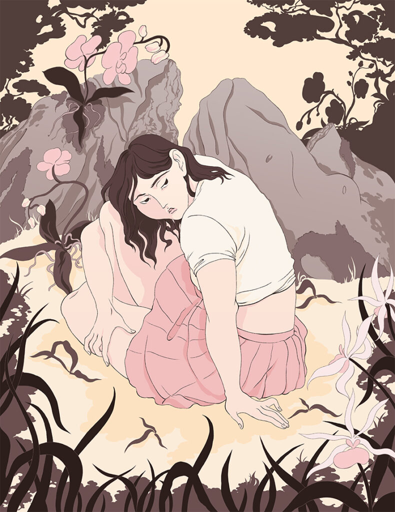 Moikka Evi! Mahtavaa saada sinut mukaan agentuuriin! Kertoisitko alkuun itsestäsi: mistä tulet ja milloin ensimmäisen kerran innostuit kuvittamisesta? Heippa – ilo tulla mukaan! Mun polku kuvittajaksi on ollut aika polveileva ja epäsuora, sillä opiskelin pitkään tekstiili-ja muotialalla. Nuorena piirtäminen oli tosin aina läsnä ja se oli tapani ymmärtää maailmaa ja ylipäätään hahmottaa asioita – ajatus kuvituksesta ammattina konkretisoitui valmistuttuani Lahden muotoiluinstituutista vuonna 2018, sillä olin jo opintojeni aikana lähinnä keskittynyt kuvalliseen ilmaisuun ja kaikki muu tuntui toissijaiselta.