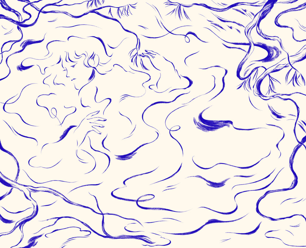 Miten kuvitustyylisi on kehittynyt urasi aikana – mitkä ovat kuvitustyylisi kulmakivet? Aloittaessani kuvittajana työskentelyä koin ahdistusta siitä, että pitää olla yksi työväline mihin keskittyy ja tämä vei hetkeksi oman estetiikan kehittymiseltä tilaa. Onnekseni sain huomata, että tekemisen kautta omaan kädenjälkeen tutustuu paremmin ja varmuus tekemiseen kantaa myös välinettä vaihtaessa. Pyrin työskentelyssäni yhdistämään esittävämpää kuvaa eleellisempään ja orgaaniseen viivajälkeen ja tasapainottelenkin jatkuvasti niiden välillä.